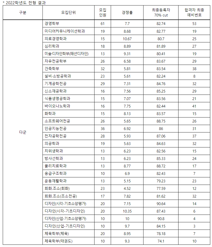 | 가톨릭대 2022학년도 입시결과 수시등급컷 정시백분위컷 (0) | 2022.10.19 |