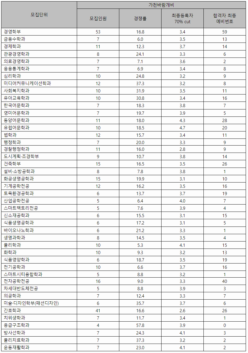 가천대학교 2022학년도 입시결과 수시 등급컷 정시백분위컷
