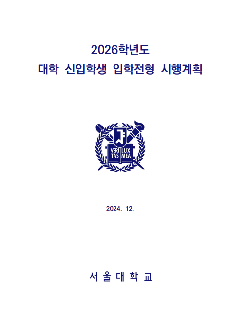 서울대학교 2026학년도 입학전형 시행계획