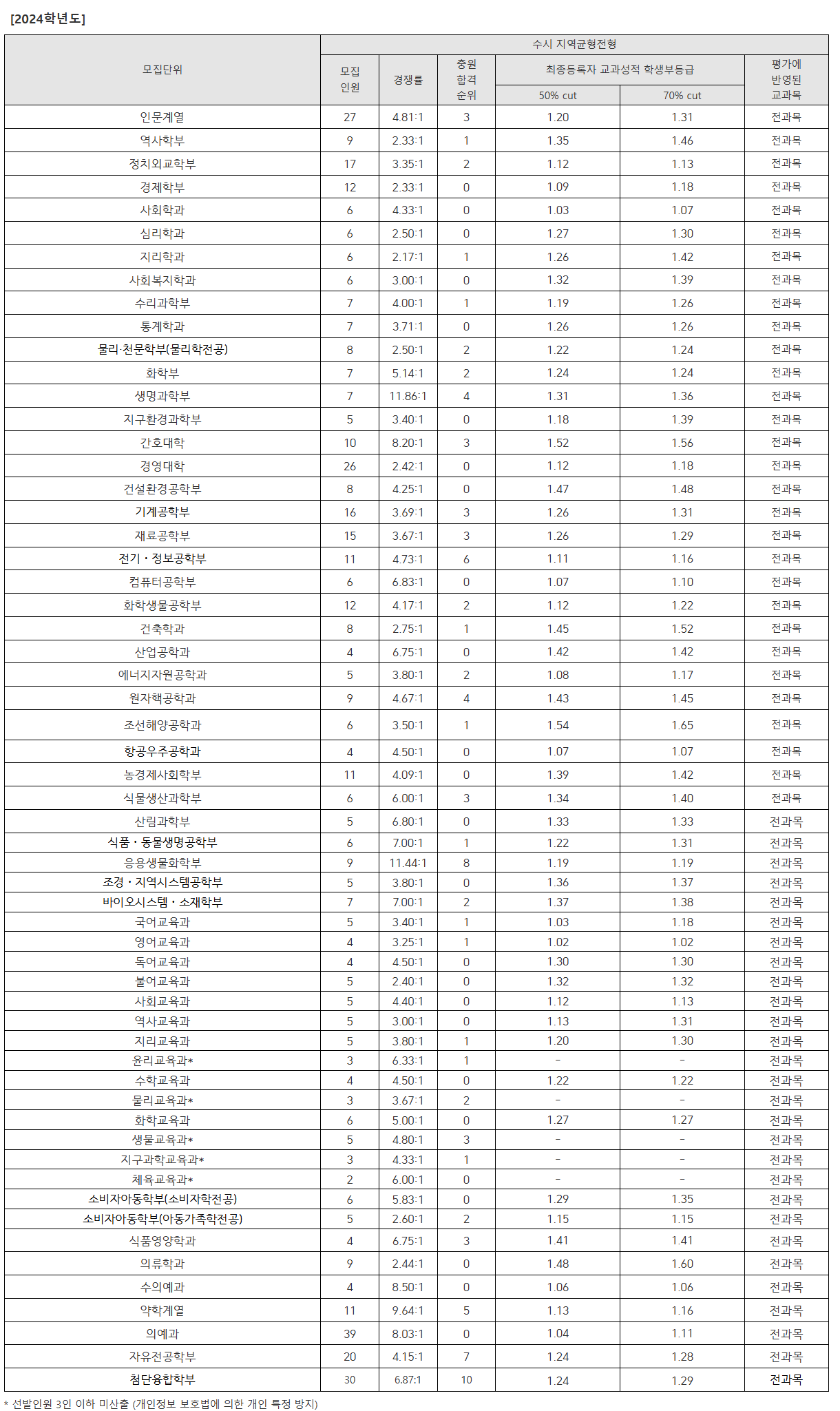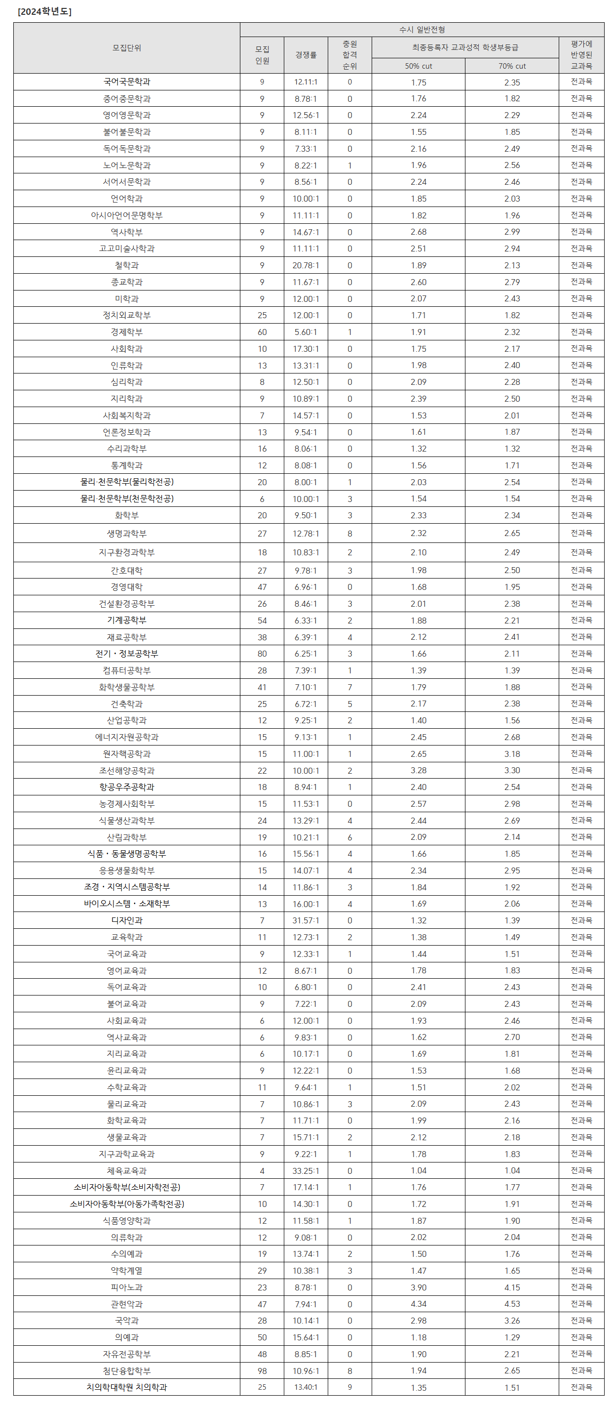 서울대학교 2024학년도 수시 일반전형 결과 분석: 주요 학과 등급컷 총정리