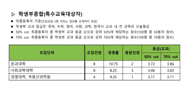 학생부종합(KU기초생활 및 차상위)합격자등급컷 및 교과환산점수