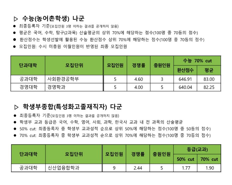 건국대학교 입시를 준비하는 수험생과 학원님들을 위해 2024학년도 수시·정시자 합격 평균 등급컷과 교과 환산점수를 제공합니다.