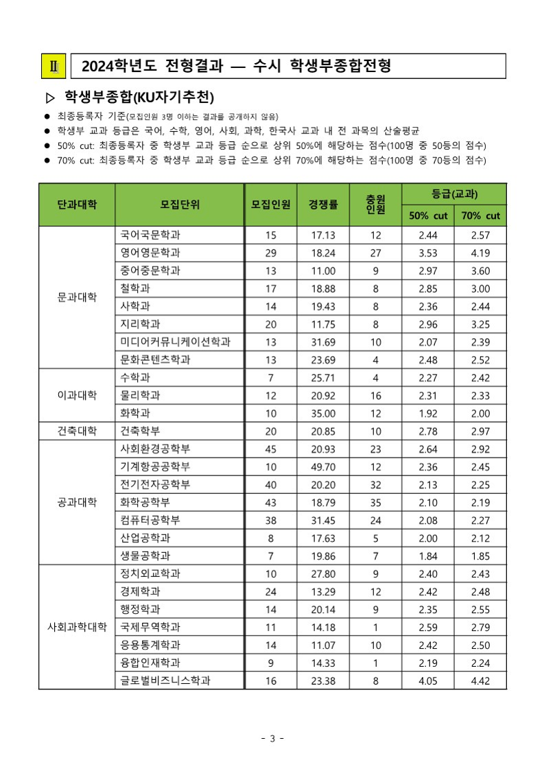건국대학교 2024학년도 수시 정시 합격자 등급컷