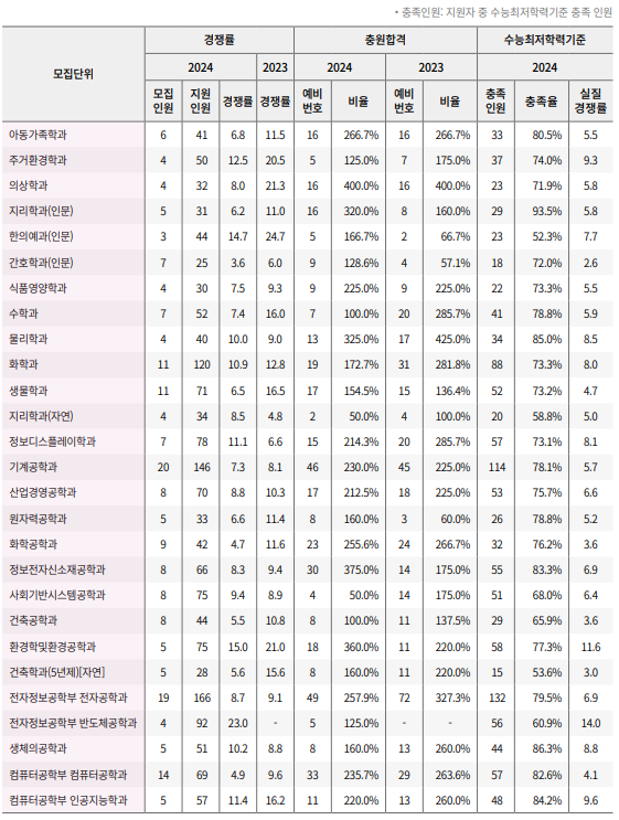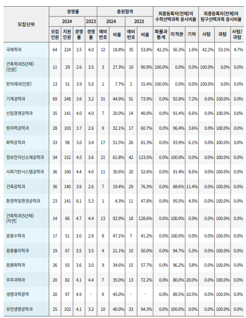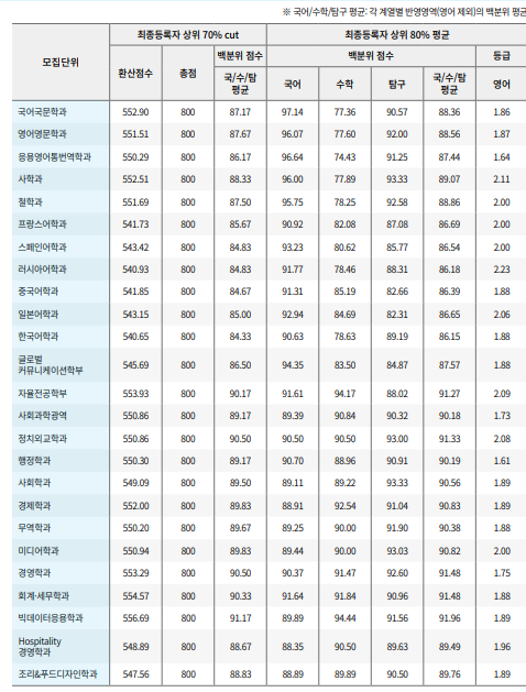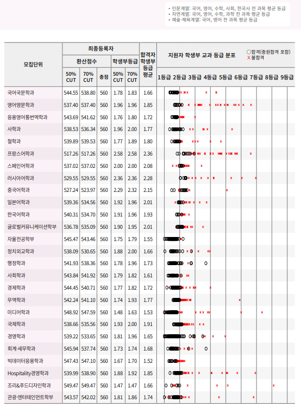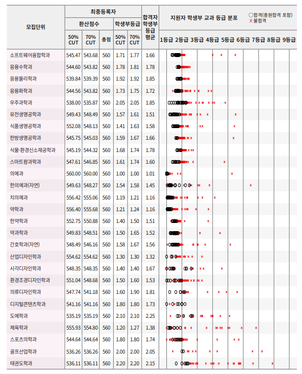 경희대학교 2024학년도 학생부교과전형 합격자 등급컷