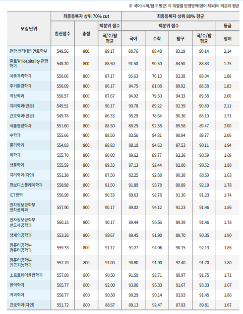 경희대학교 2024학년도 정시 합격자 백분위 컷