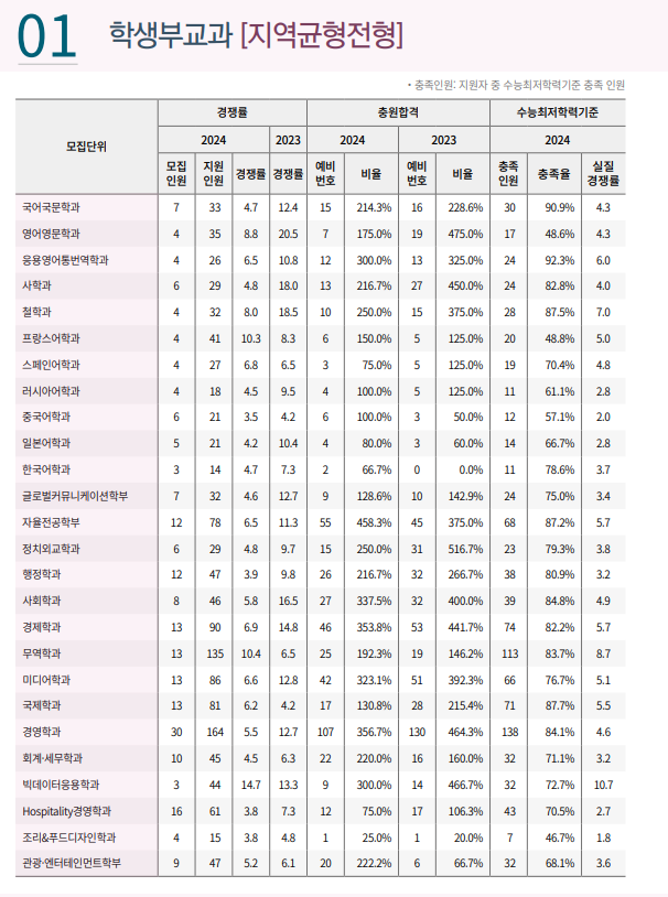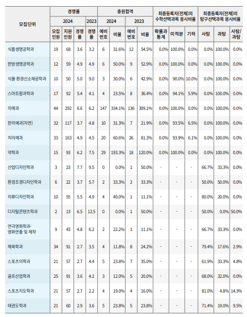 경희대학교 2024학년도 학생부교과전형 합격자 등급컷