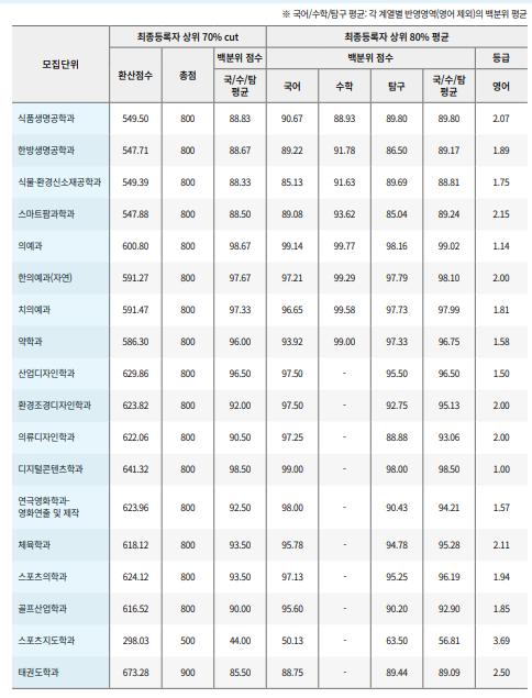 경희대학교 2024학년도 정시 합격자 백분위 컷