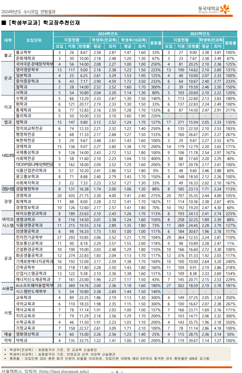 2024학년도 동국대 학생부종합 Do Dream 전형결과