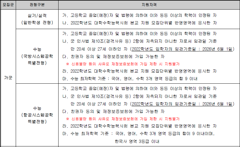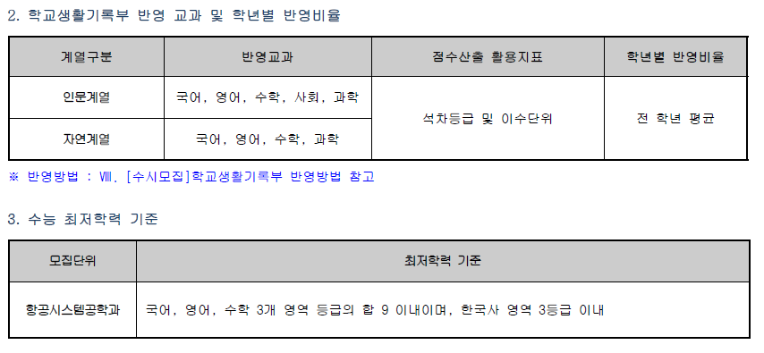 ❏ 학생부교과(항공시스템공학 특별전형)
