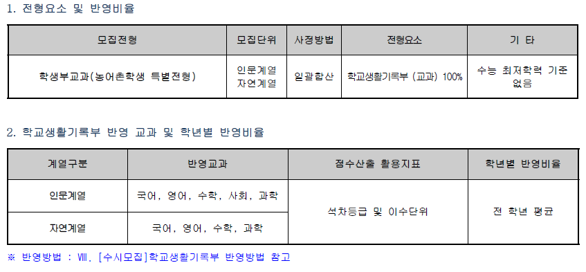 ❏ 학생부교과(농어촌학생 특별전형)