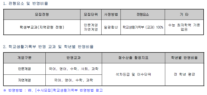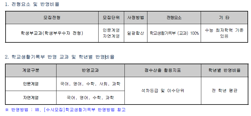 [수시모집] 학교생활기록부 반영방법