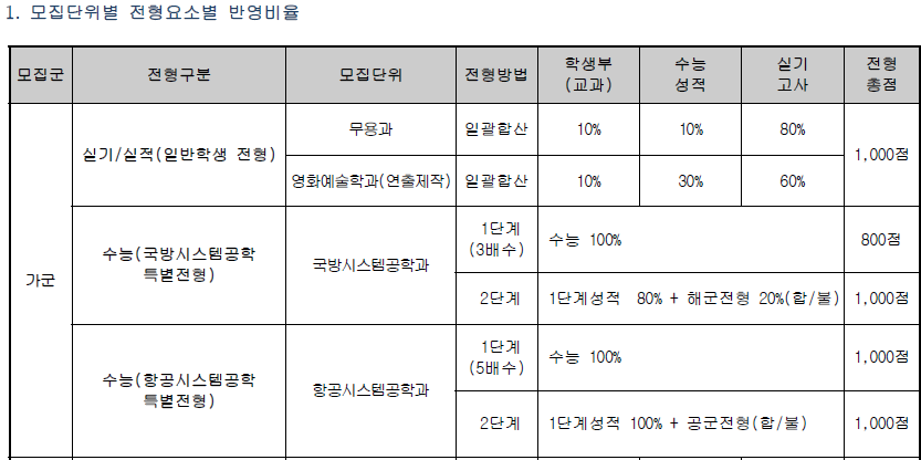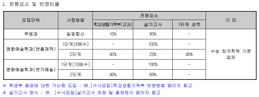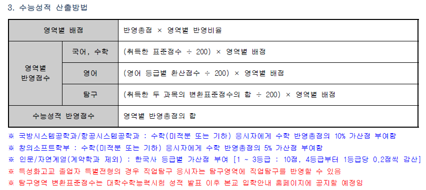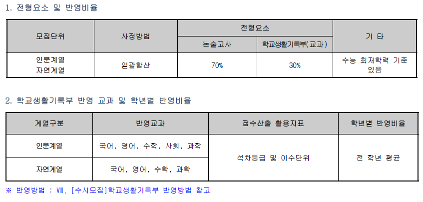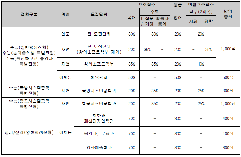 [정시모집] 전형요소별 반영비율 및 수능 반영방법