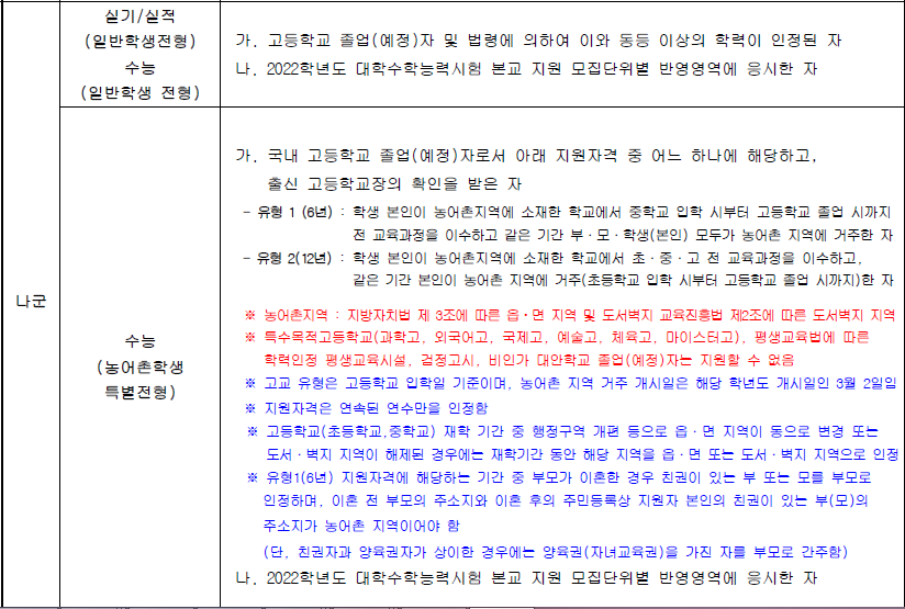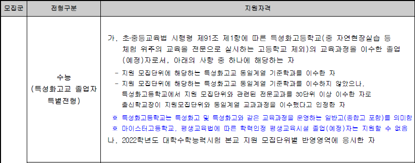 [정시모집] 전형유형별 지원자격