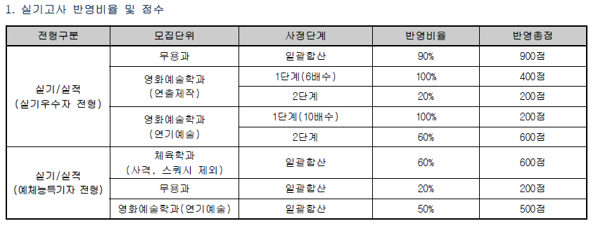 ❏ 실기/실적(실기우수자 전형)