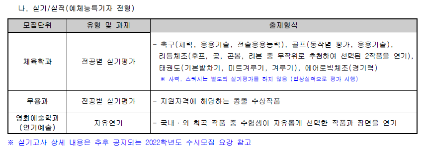 ❏ 실기/실적(예체능특기자 전형)