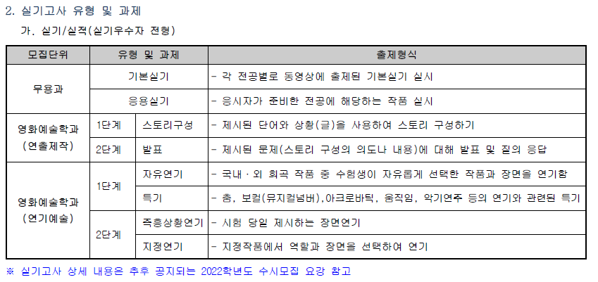 [수시모집] 실기고사 유형 및 출제형식