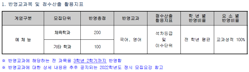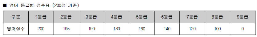 2. 대학수학능력시험 영역별 반영비율