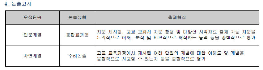 ❏ 논술(논술우수자 전형)