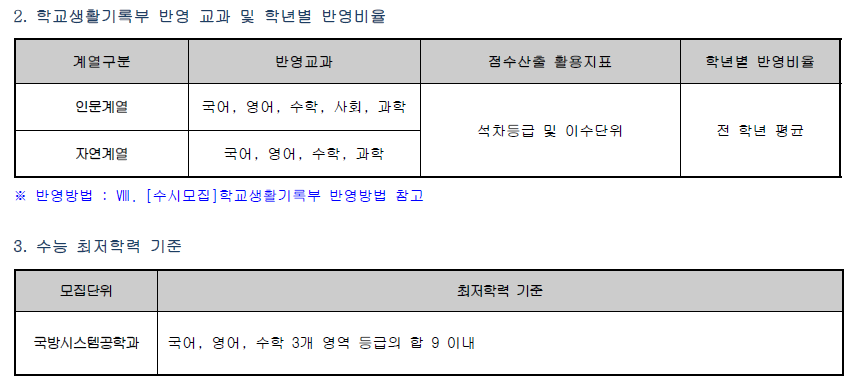 ❏ 학생부교과(국방시스템공학 특별전형)