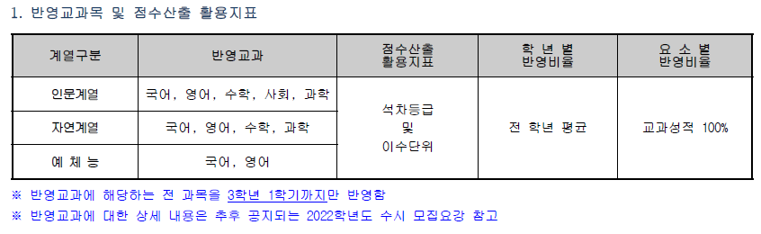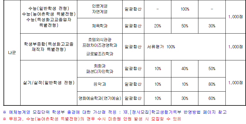 [정시모집] 전형요소별 반영비율 및 수능 반영방법