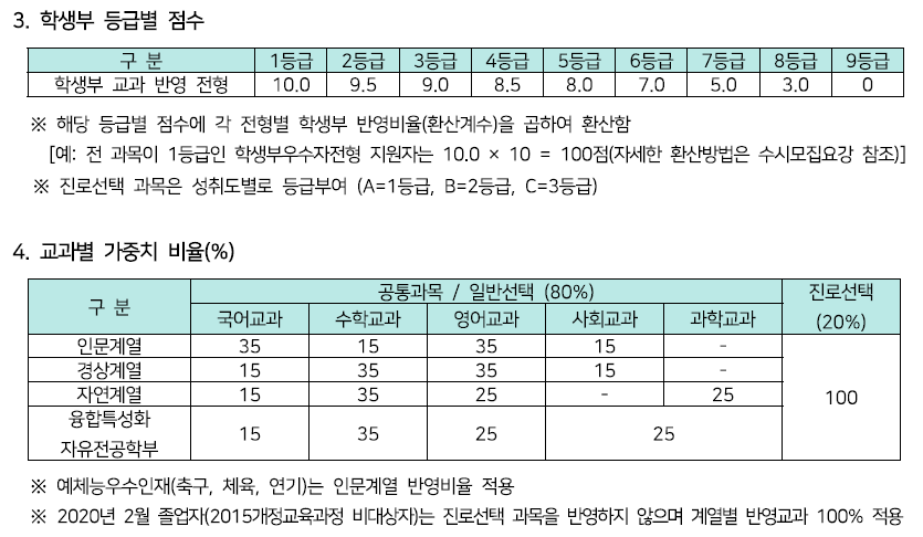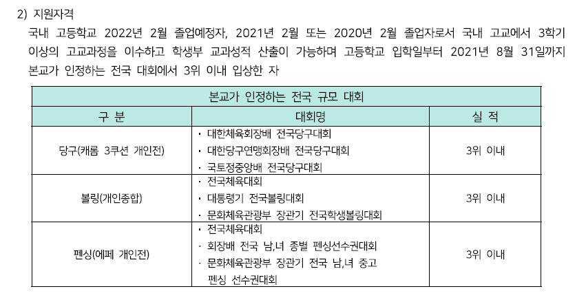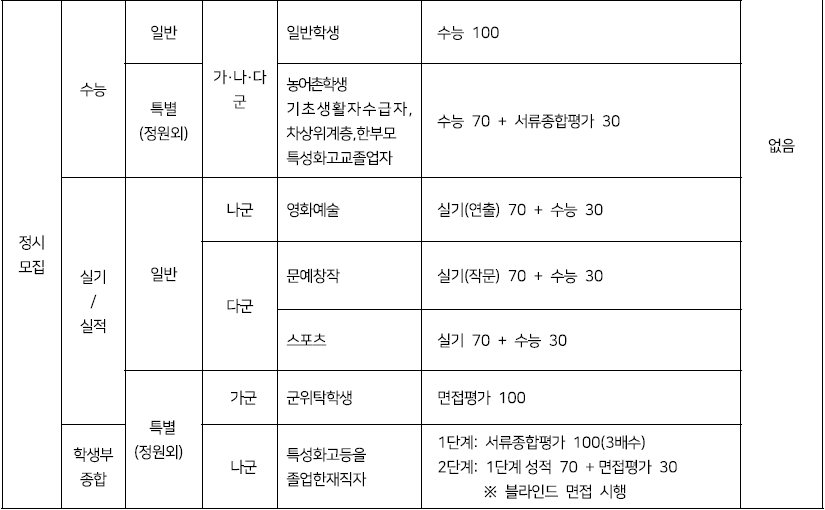 세부 전형별 안내(2022학년도 전형방법 종합표)