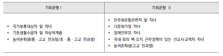 ▶ 기회균형Ⅰ(80명)과 기회균형Ⅱ(30명)으로 지원자격별 분리 모집