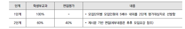 ∙ 학교생활기록부 교과점수는 학생부교과[추천형]의 교과점수 산출 방법을 따름