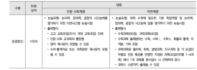 ∙ 일괄합산 전형으로서 논술시험 성적 100%로 합격자를 선발함