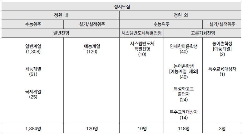 1. 수능[일반전형(일반계열, 국제계열, 체능계열)], 실기/실적[일반전형(예능계열)]