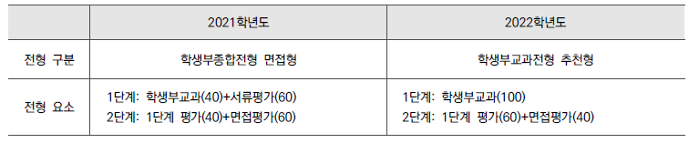 ▶ 수시모집 ‘학생부종합전형 면접형’을 ‘학생부교과전형 추천형’으로 개편