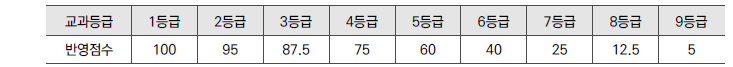 - 반영과목 A의 등급점수는 다음과 같이 환산하여 적용함