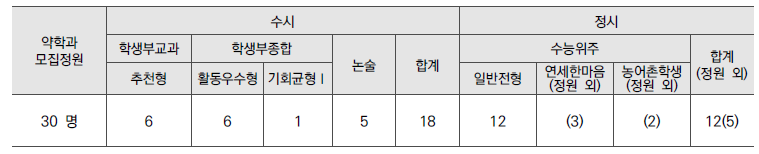 ▶ 약학대학 6년제 전환에 따라 2022학년도부터 통합 6년제로 다음과 같이 선발함