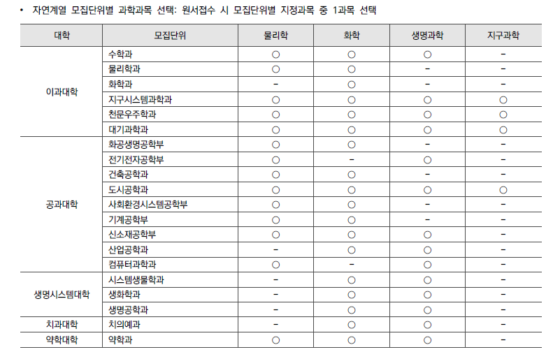ⓒ 자연계열(의예 포함)의 과학탐구 영역은 두 과목의 표준점수 총점 200점에 3/2을 곱하여 300점 만점으로 반영함