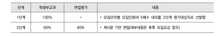 ∙ 학교생활기록부 교과점수는 학생부교과[추천형]의 교과점수 산출 방법을 따름