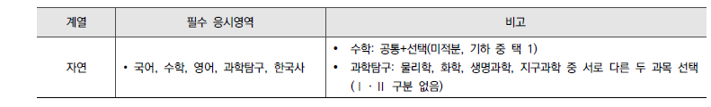 나. 지원자격 및 계열별 대학수학능력시험 필수 응시영역