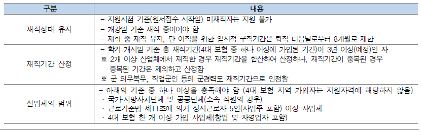 - 아래 조건 중 하나에 해당하는 자로서 산업체 근무경력이 3년 이상인 재직자(단, 개강일 기준 재직 중이어야 함)