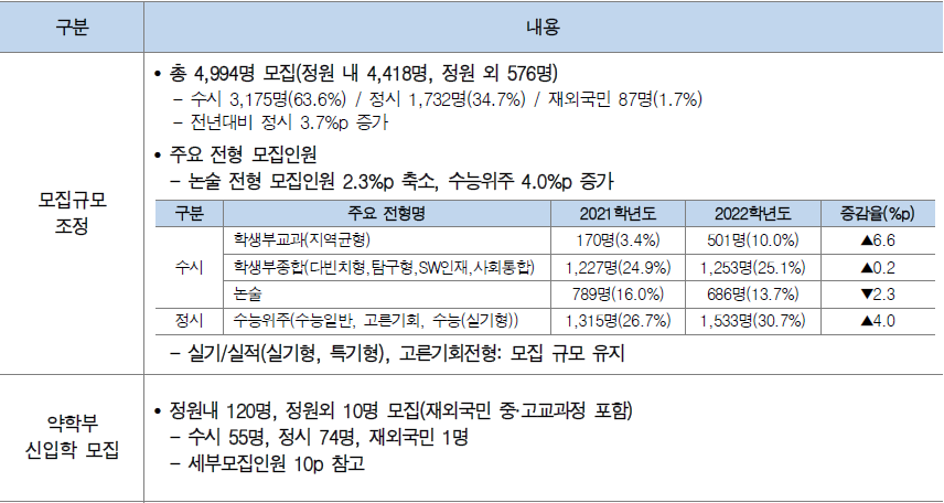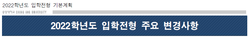 중앙대학교 2022학년도 입학전형 주요 변경사항