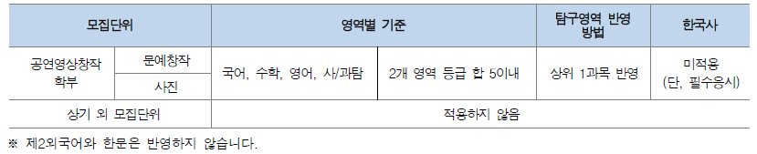 공연영상창작학부(문예창작, 사진)는 수능최저학력기준 적용
