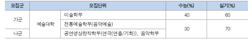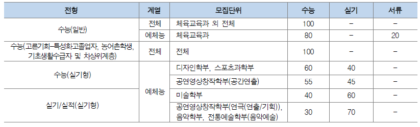 1) 실기/실적(실기형): 공연영상창작학부(문예창작, 사진)는 수능최저학력기준 적용