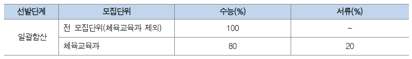체육교육과 수능 80% + 서류평가 20%로 선발