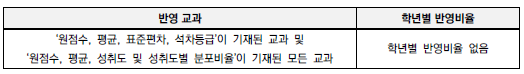 다) 교과 성적 산출 방법: 석차등급과 성취도에 따른 변환 석차등급을 바탕으로 교과평균등급 산출 후 학생부(교과)점수로 변환함