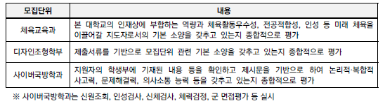 지원자의 학생부에 기재된 내용 등을 확인하고 제시문을 기반으로 하여 논리적·복합적 사고력, 문제해결력, 의사소통 능력 등을 갖추고 있는지 종합적으로 평가