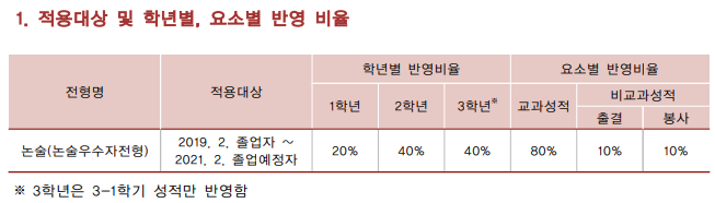 논술우수자전형 학교생활기록부 반영방법