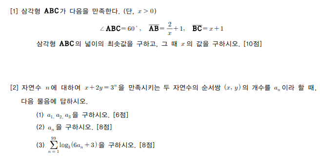 ◦문제와 관련된 용어와 정리를 기술한 제시문과 4~6 문항으로 구성