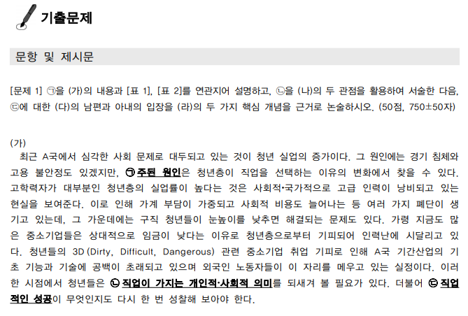 나. 출제형식 : 복수의 제시문을 상호 관련시켜 통합형으로 출제
