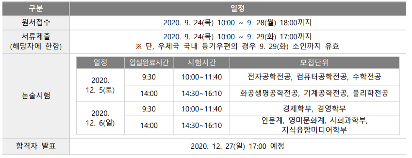 | 광운대학교 2021학년도 논술전형과 논술일정 (0) | 2020.09.19 |
