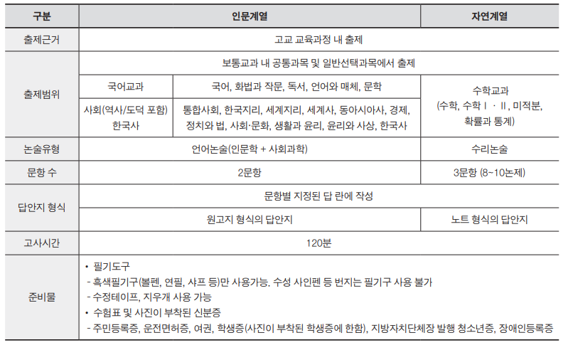 논술우수자 전형 안내