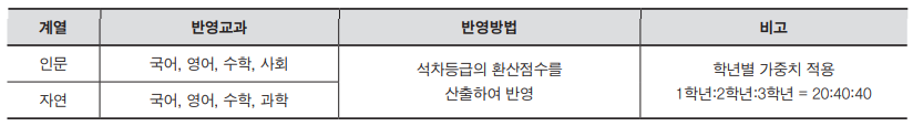 학교생활기록부 반영교과 및 반영방법