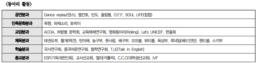 학생들의 자치를 위한 학생회 활동 활성화 및 학생들의 교육적 특기와 재능을 신장시킬 수 있는 동아리 활동 지원 모색 필요