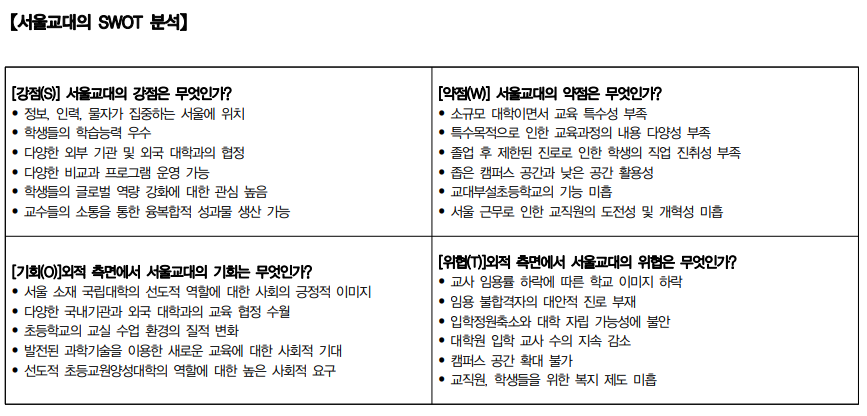 서울교대의 강점과 약점